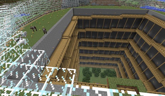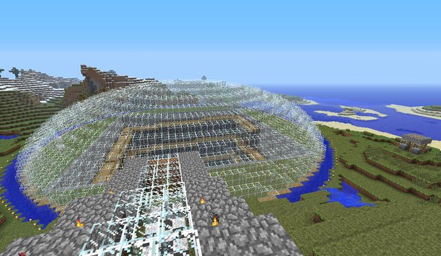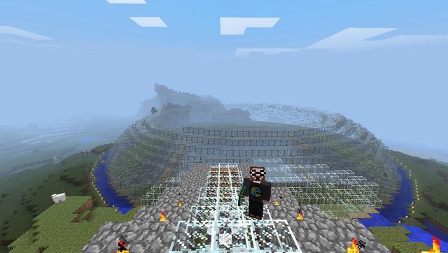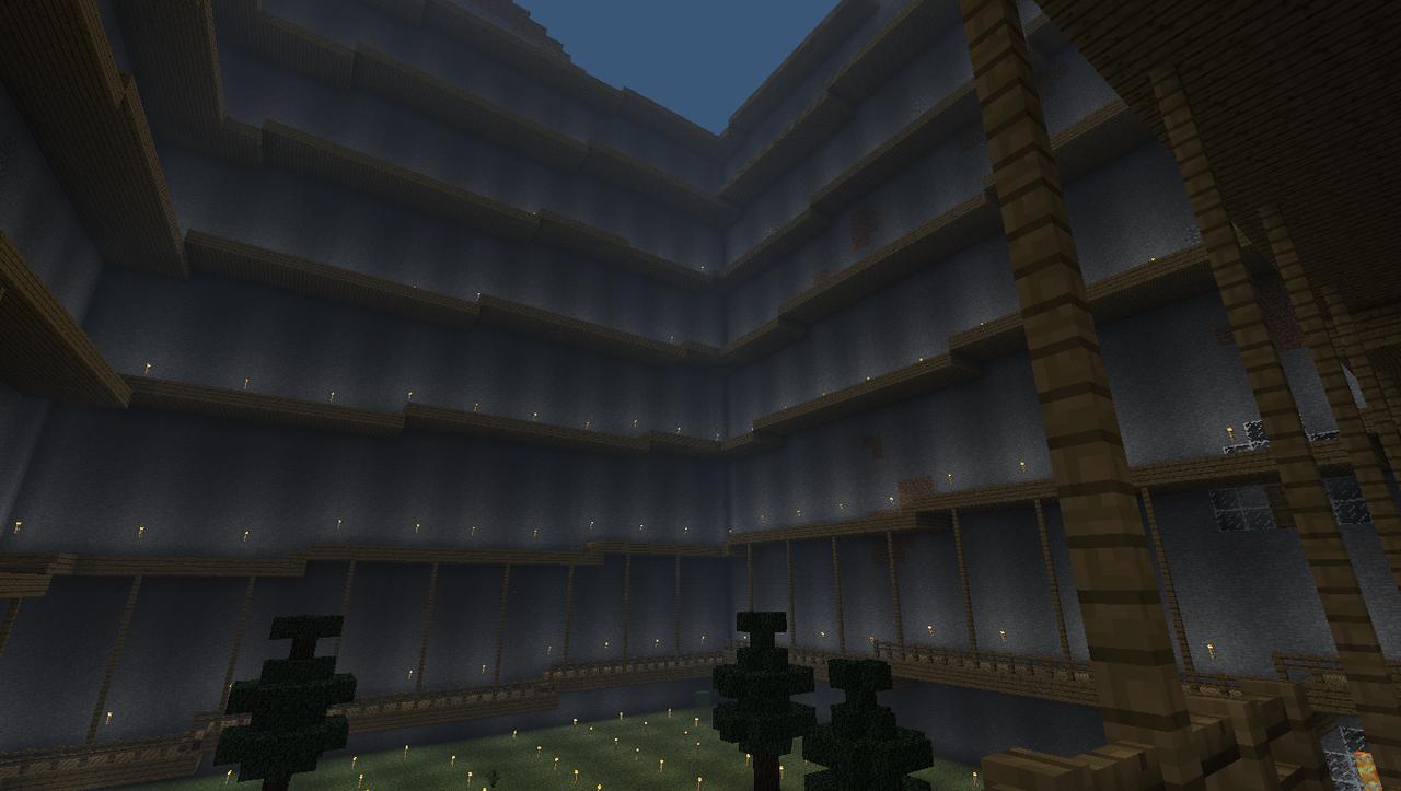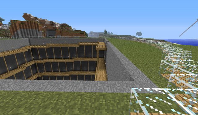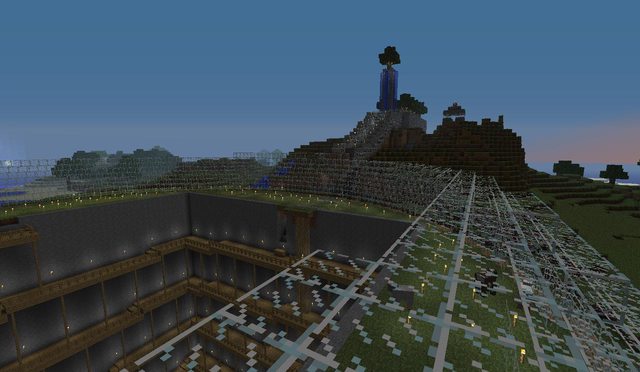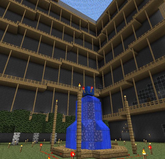 Historical Note: This build was completed in September 2011. Minecraft has come a long way since then, and this build is less impressive by modern standards. I think it is worth noting that in the version we were playing in, there was no silk touch or efficiency enchantment - or enchantments of any kind. It also lacked beacons and potions. Conversely, there was no hunger mechanic. The fishcraft server has been around for 5 years, but this is still one of my favourite builds.