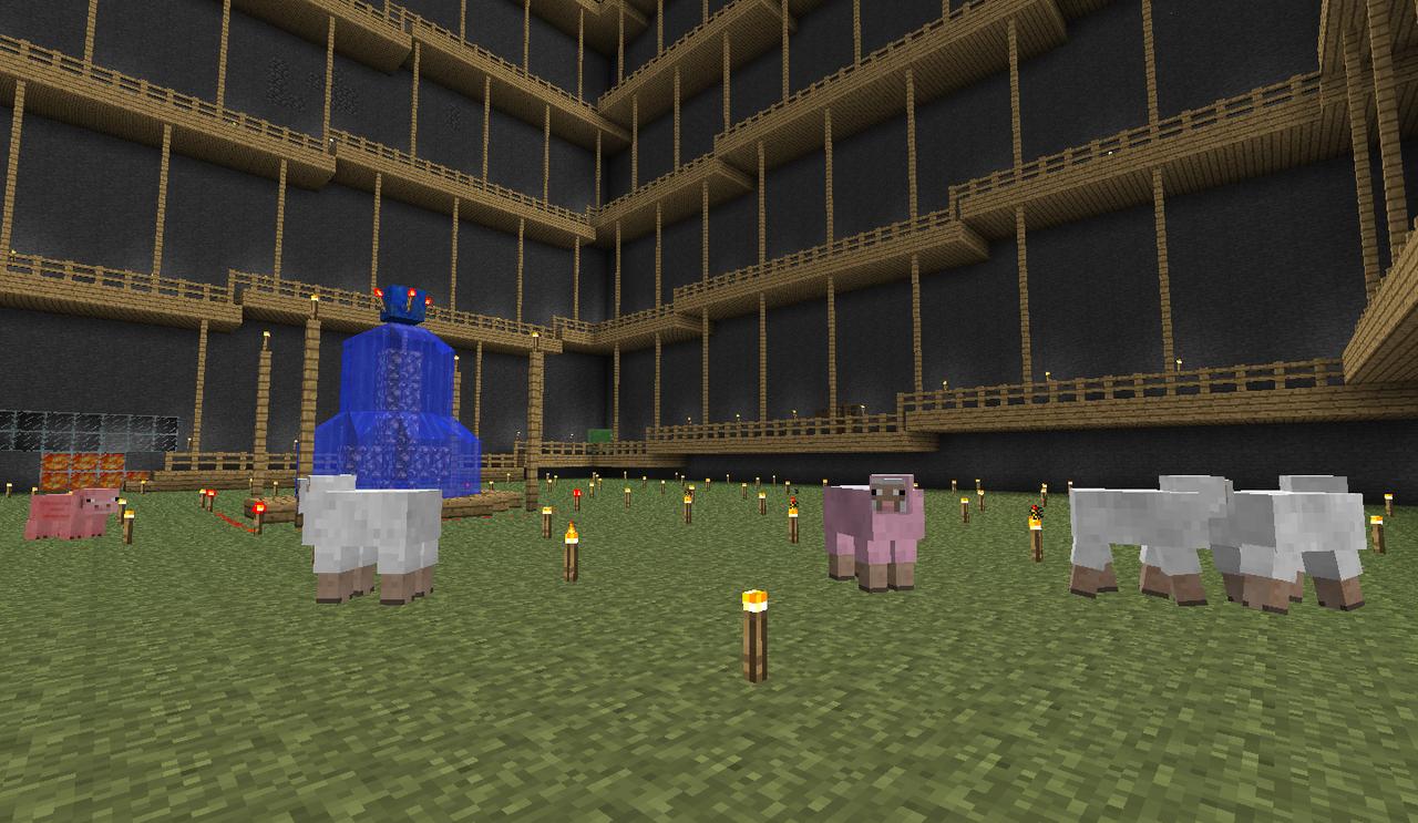 Built a fountain to celebrate completion of phase 2. Also a rare pink sheep spawns!
