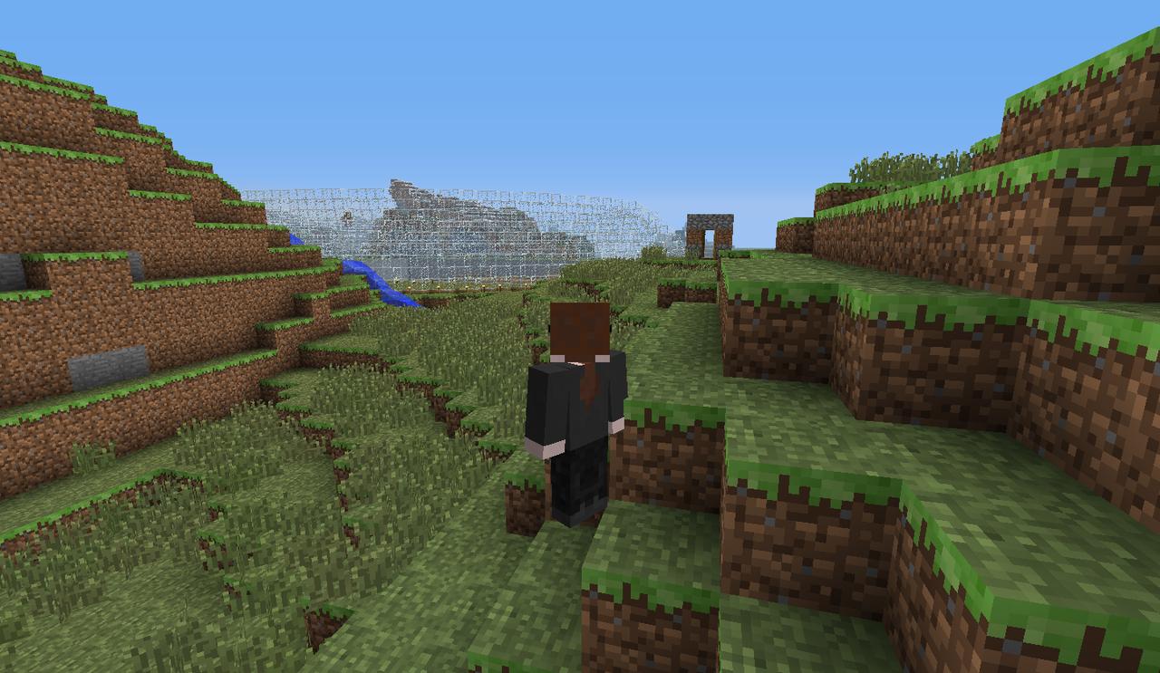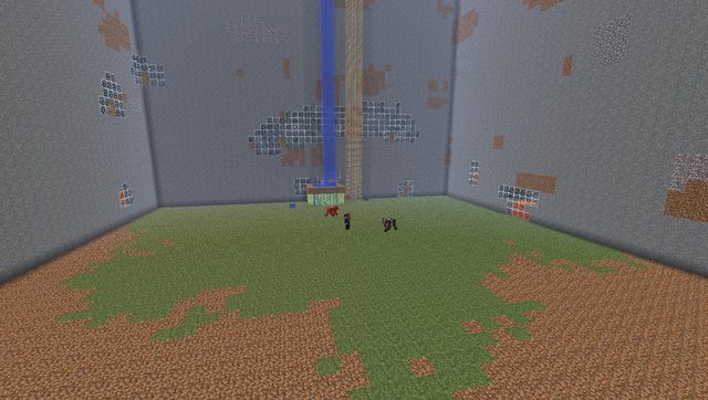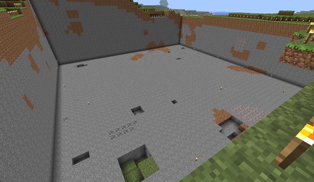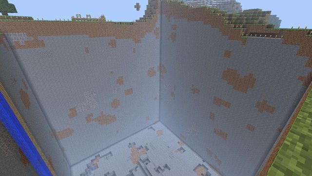 Some progress. Near the front you can see the spiral of grass blocks we used to move grass all the way down.