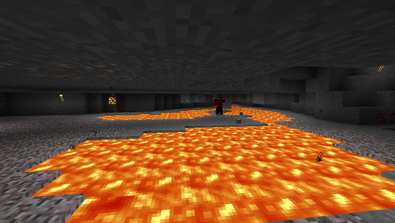 We had to drain a large number of lava lakes in caves at the very bottom before we could go any further.